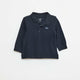 أكمام طويلة من القطن البيكيه تيشرت بولو أزرق