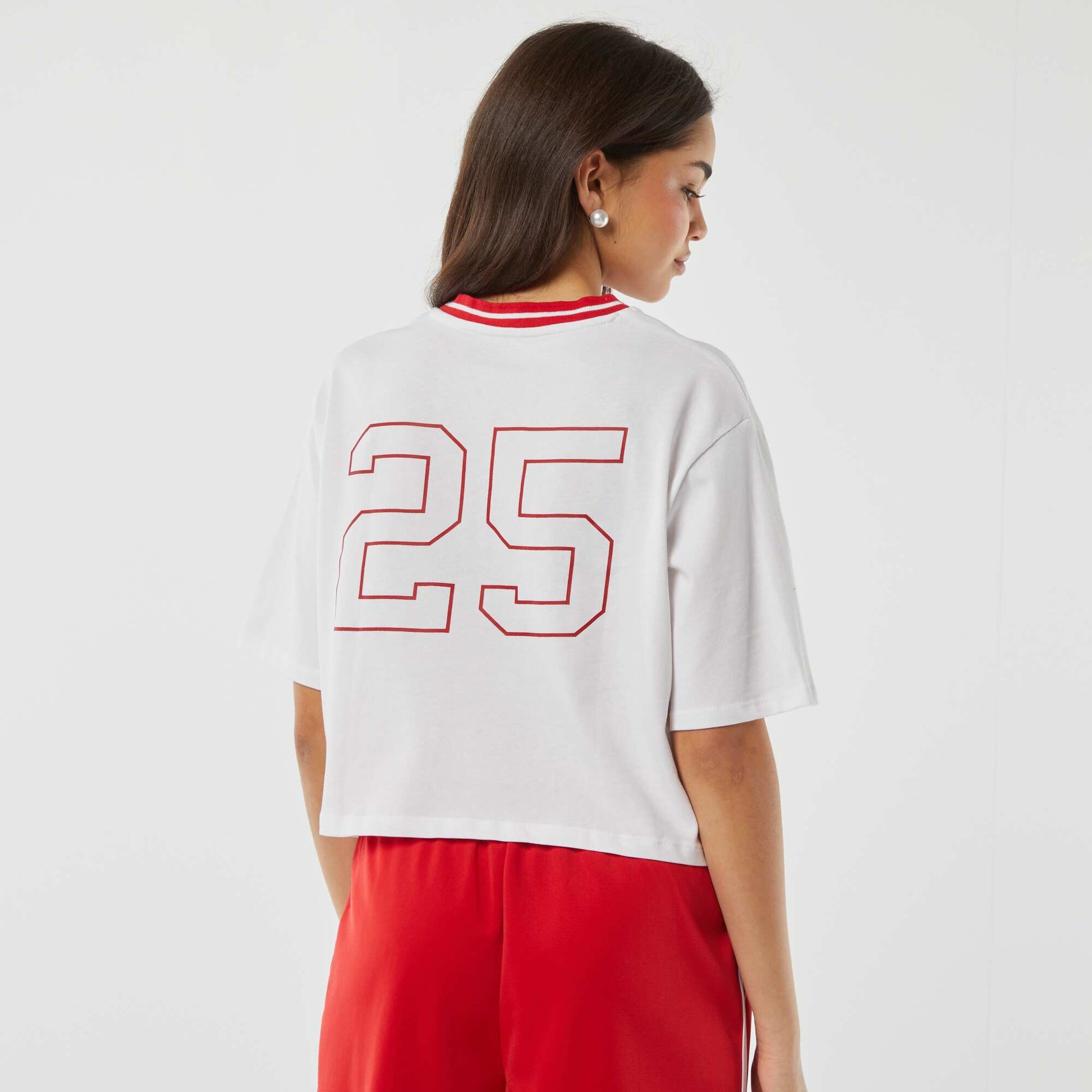 تي شيرت "كاليفورنيا" قصير باللون الأبيض