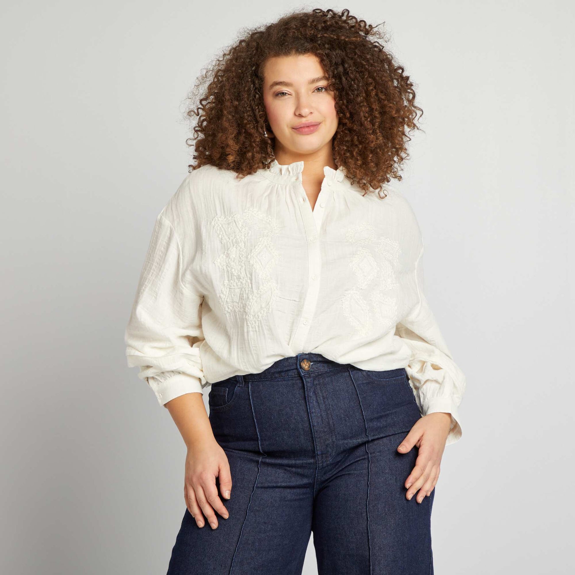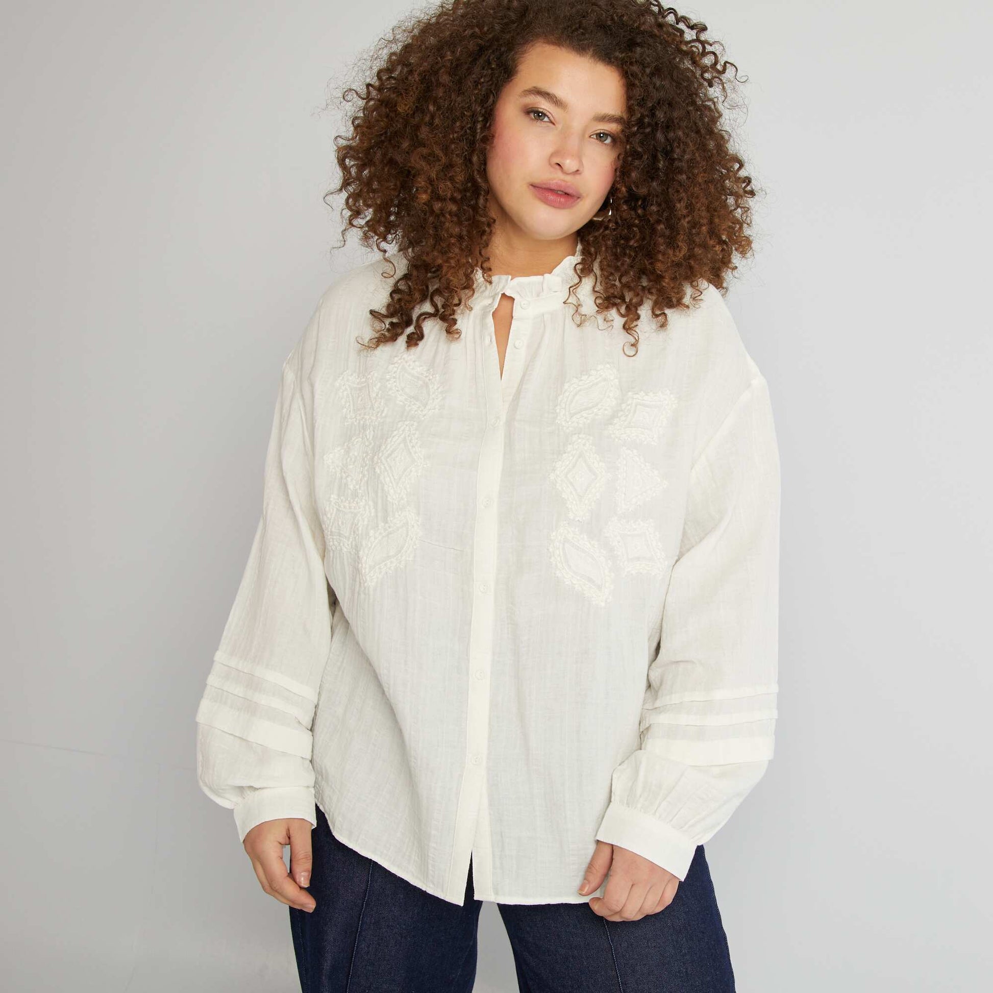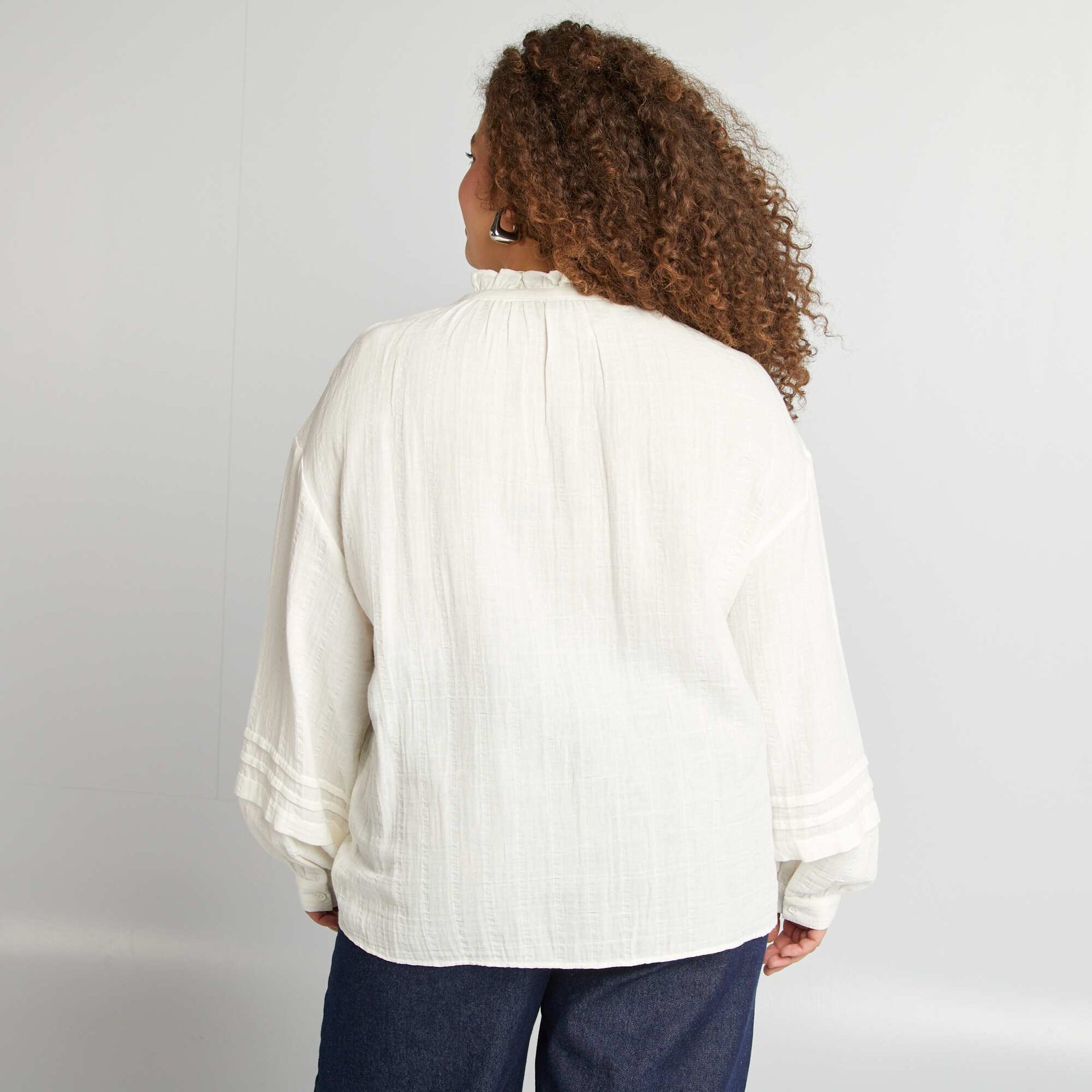 قميص من الشاش القطني باللون البيج