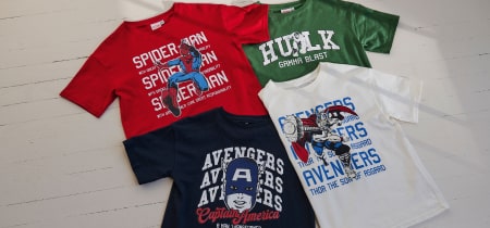 بدءًا من قمصان ستيتش ولوتسو لـ البنات لسبيدرمان وهالك والمنتقمون الصبيان تجلب قمصاننا المرخصة كل المرح دون أن تكلفك الكثير. تتيح هذه القمصان المريحة والمثالية للمغامرات اليومية للأطفال التباهي بأبطالهم بأناقة وبأسعار يحبها الآباء.