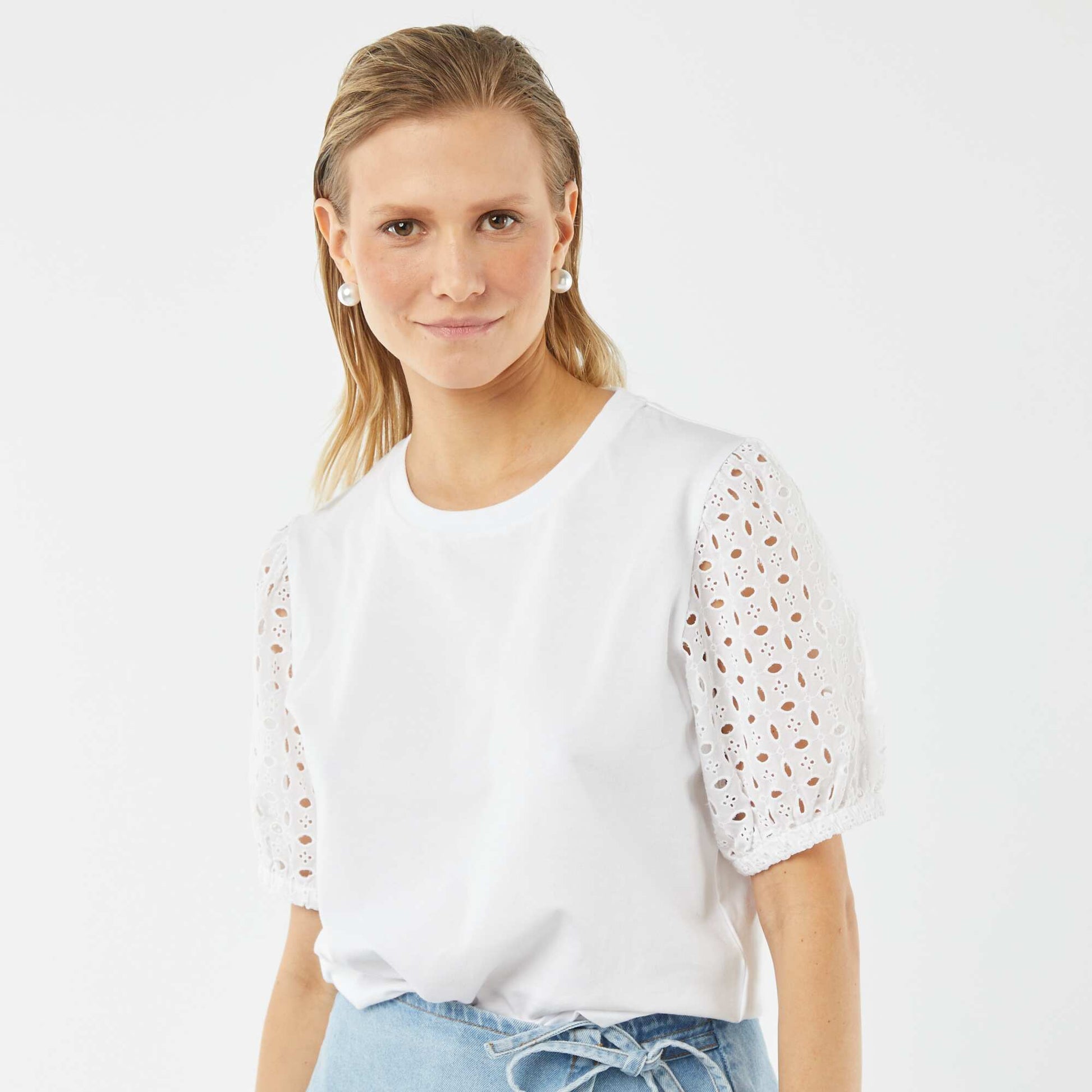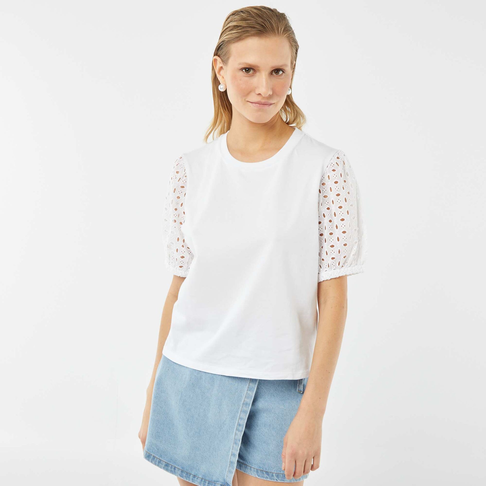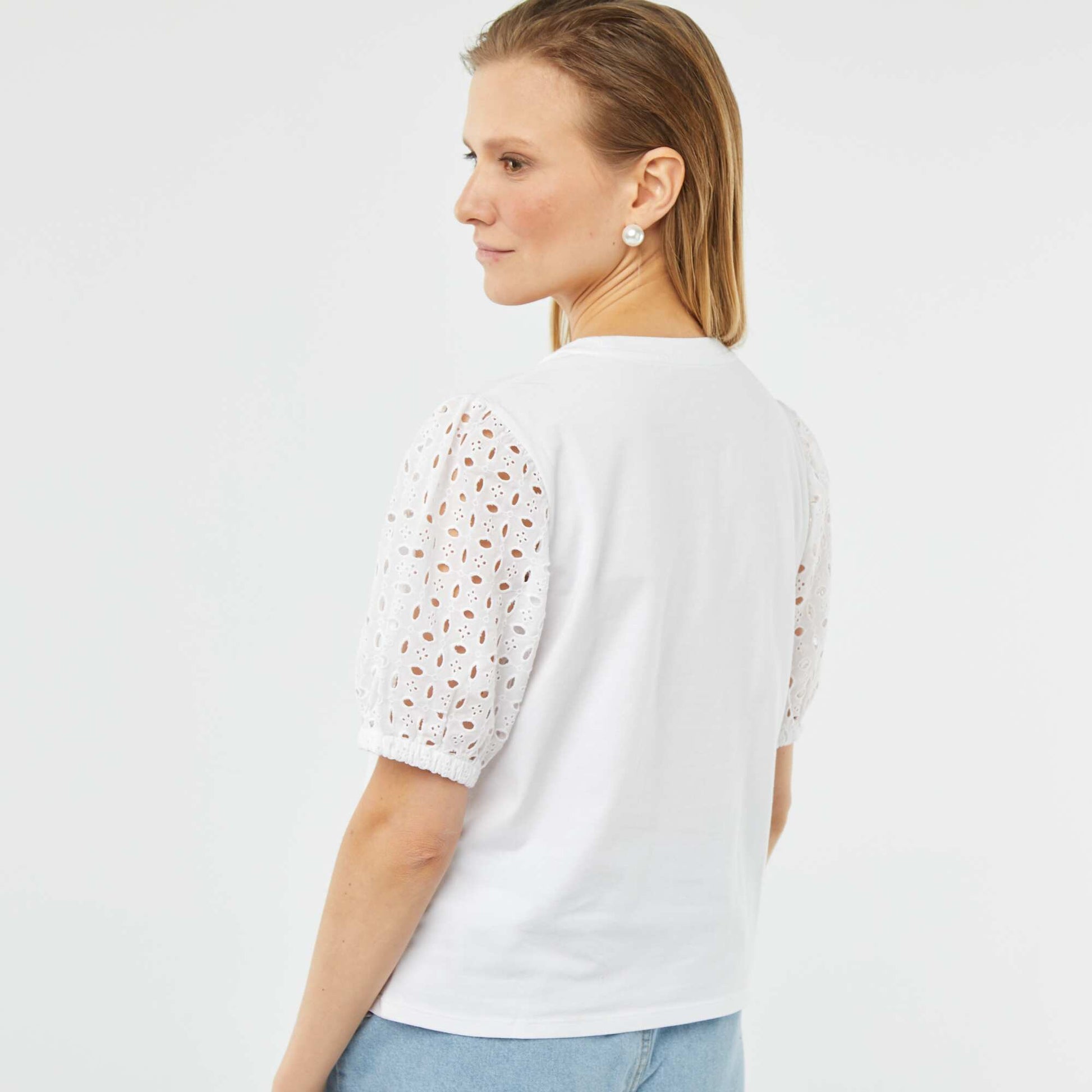 تي شيرت سادة يبرز من بين الجميع بأكمامه المصنوعة من البرودري أنجليز!