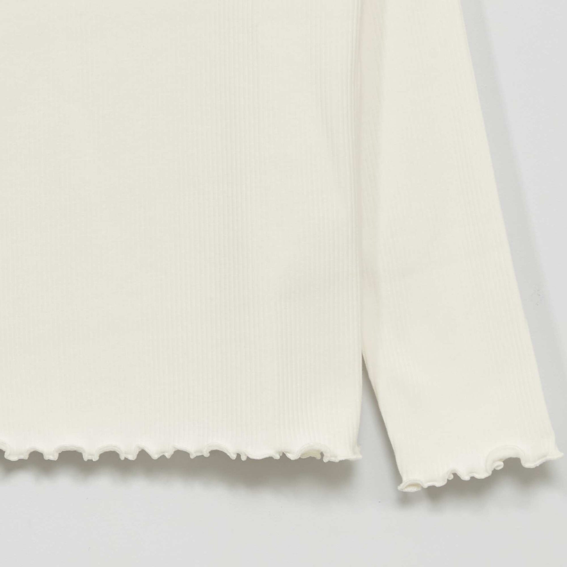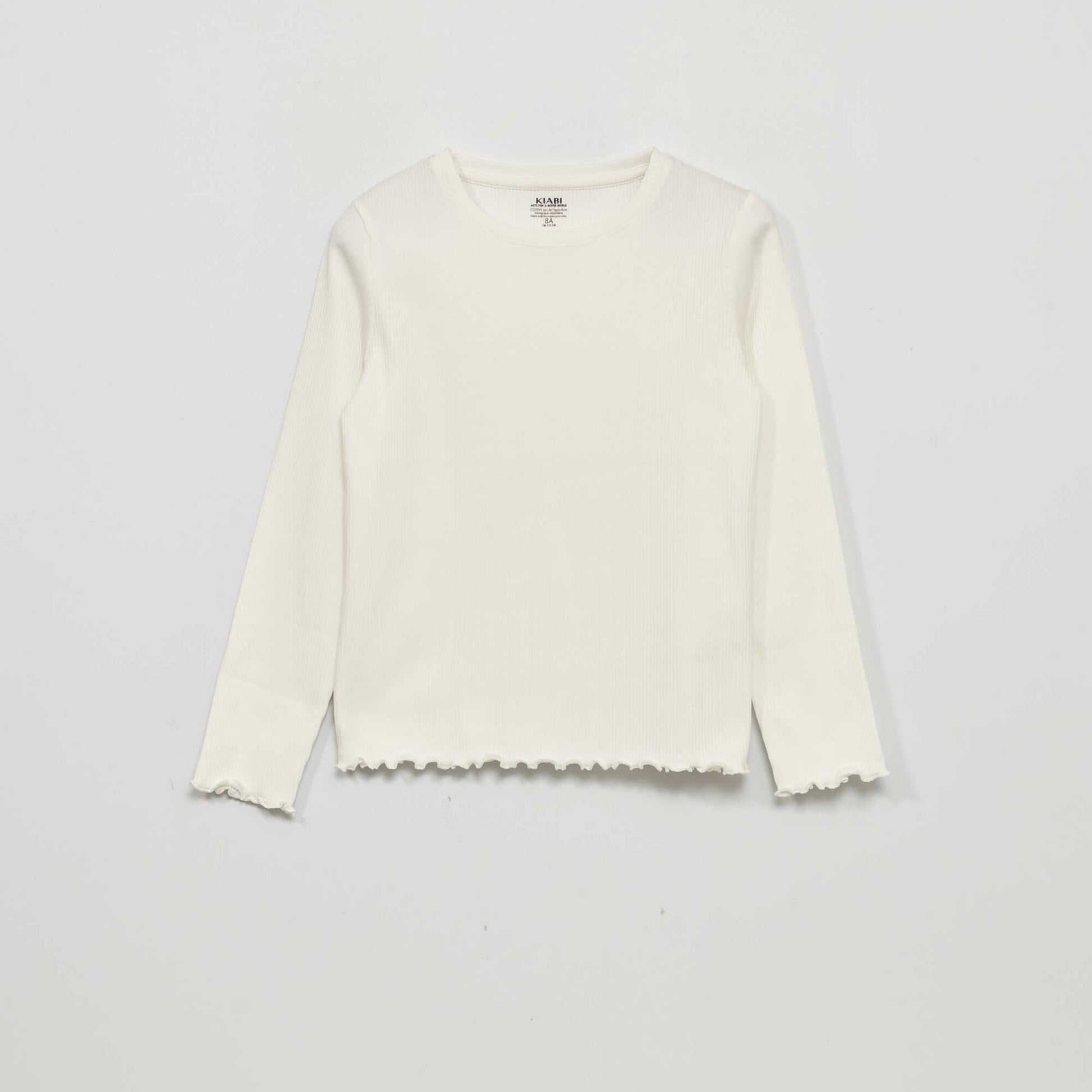 نسيج مضلع بأكمام طويلة تيشرت أبيض