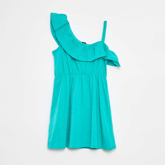 -44%Dress with bare shoulder and broderie anglaise GREEN