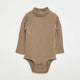 Pointelle Knit Bodysuit with High Neck BEIGE