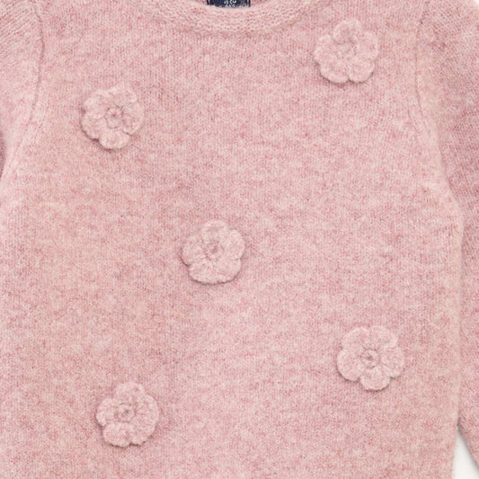 NewAdd to cartRound Neck Sweater with Flower Patch PINK