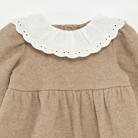 NewInterlock Dress with Large Cotton Gauze Collar BEIGE