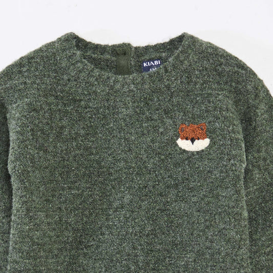 NewKnit Crew Neck Sweater with Chest Embroidery GREEN