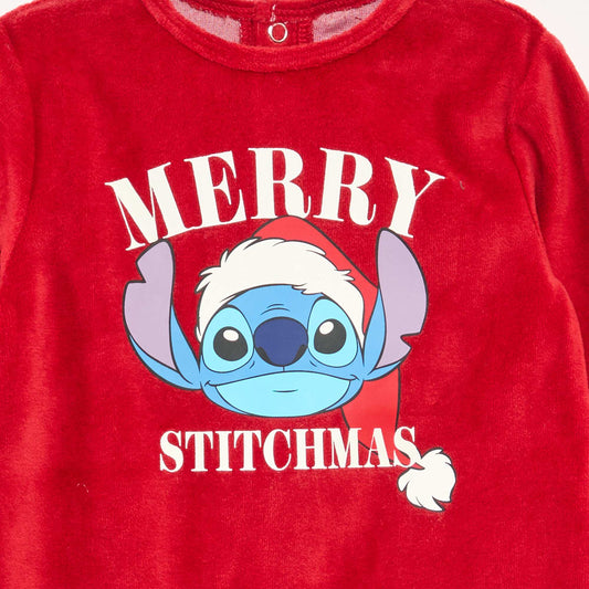 NewDisney 'Stitch' Christmas Heavy Sleepsuit in Cotton Velvet RED