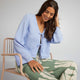 A gorgeous linen blend blouse with unusual tie fastenings at the front.