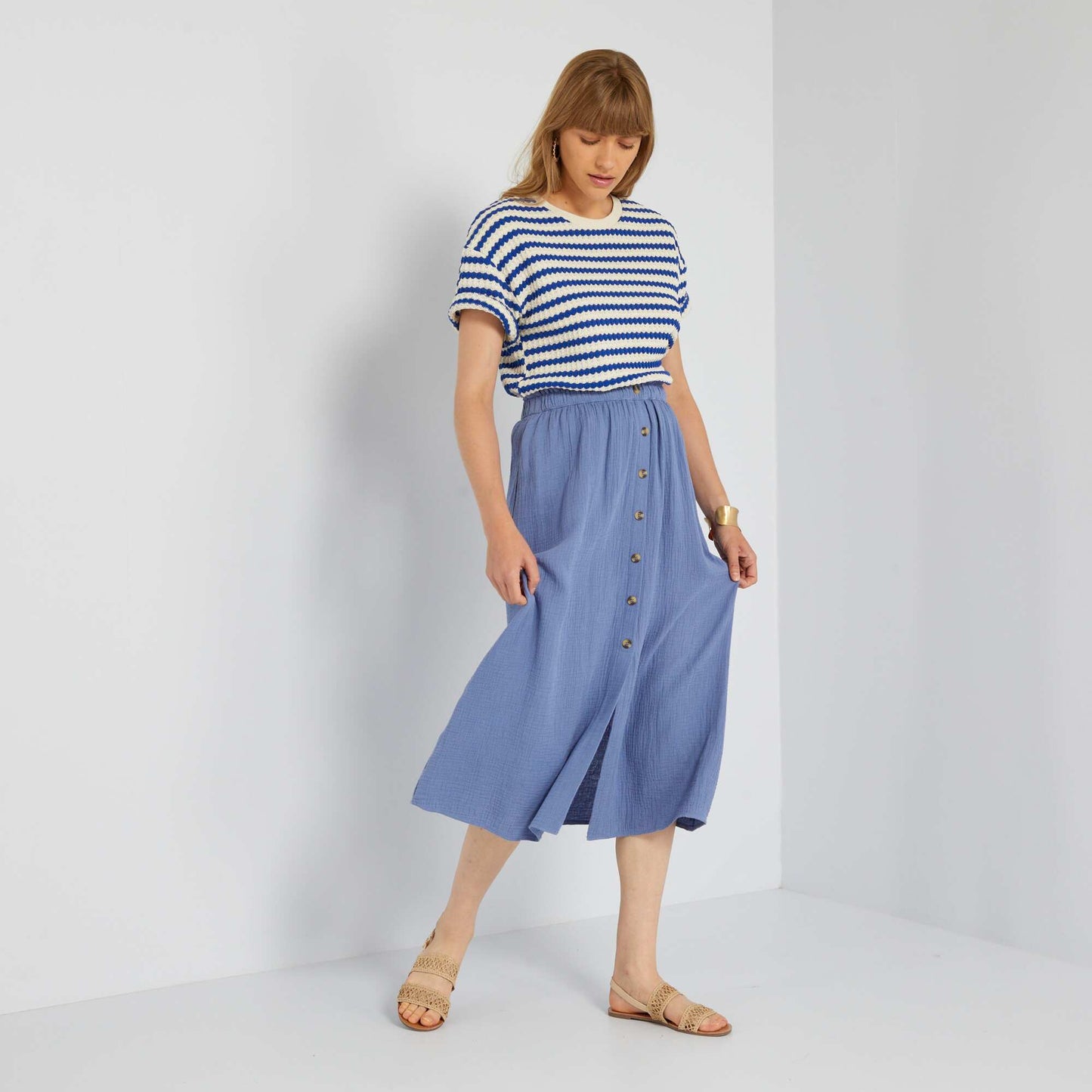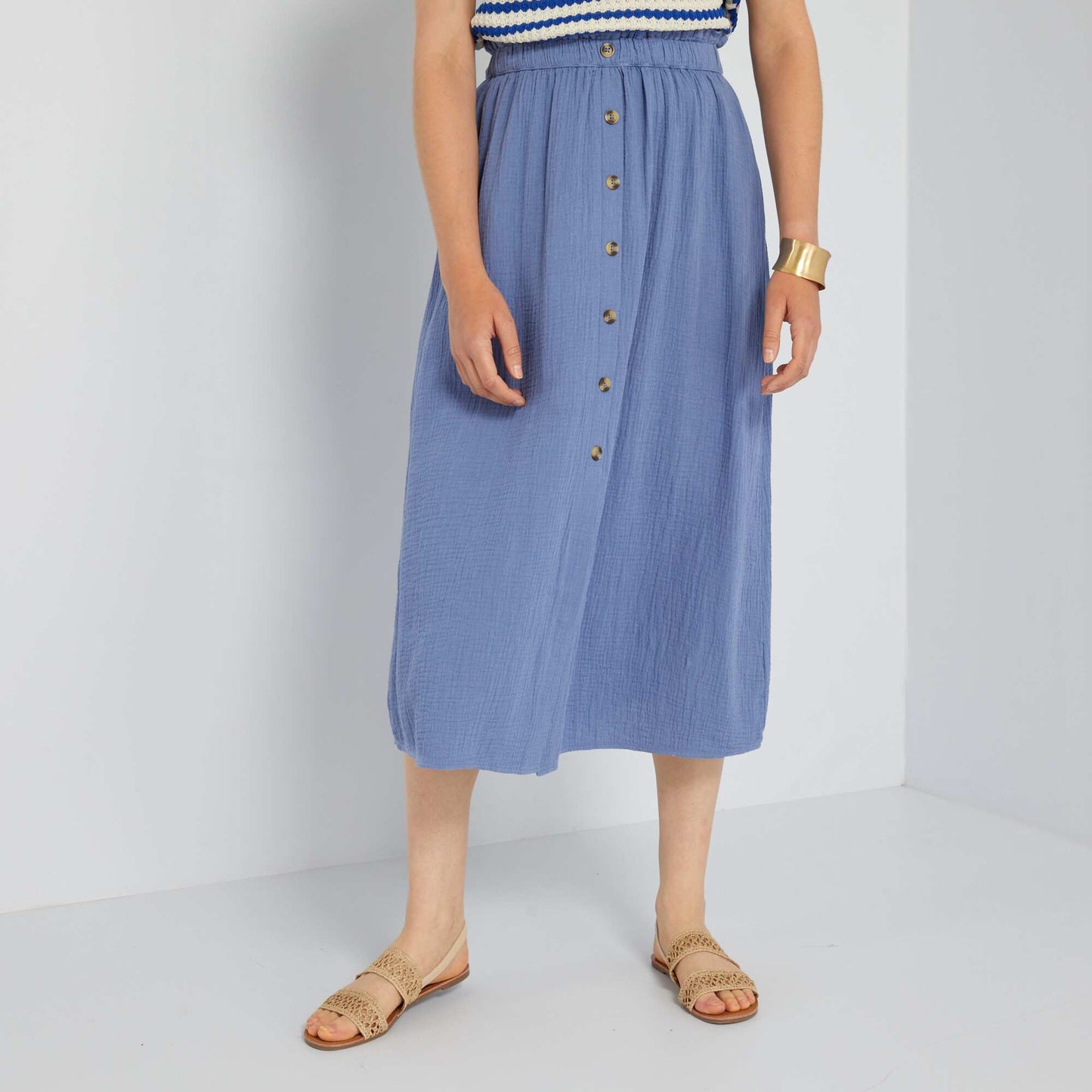Cotton gauze midi skirt BLUE COLON