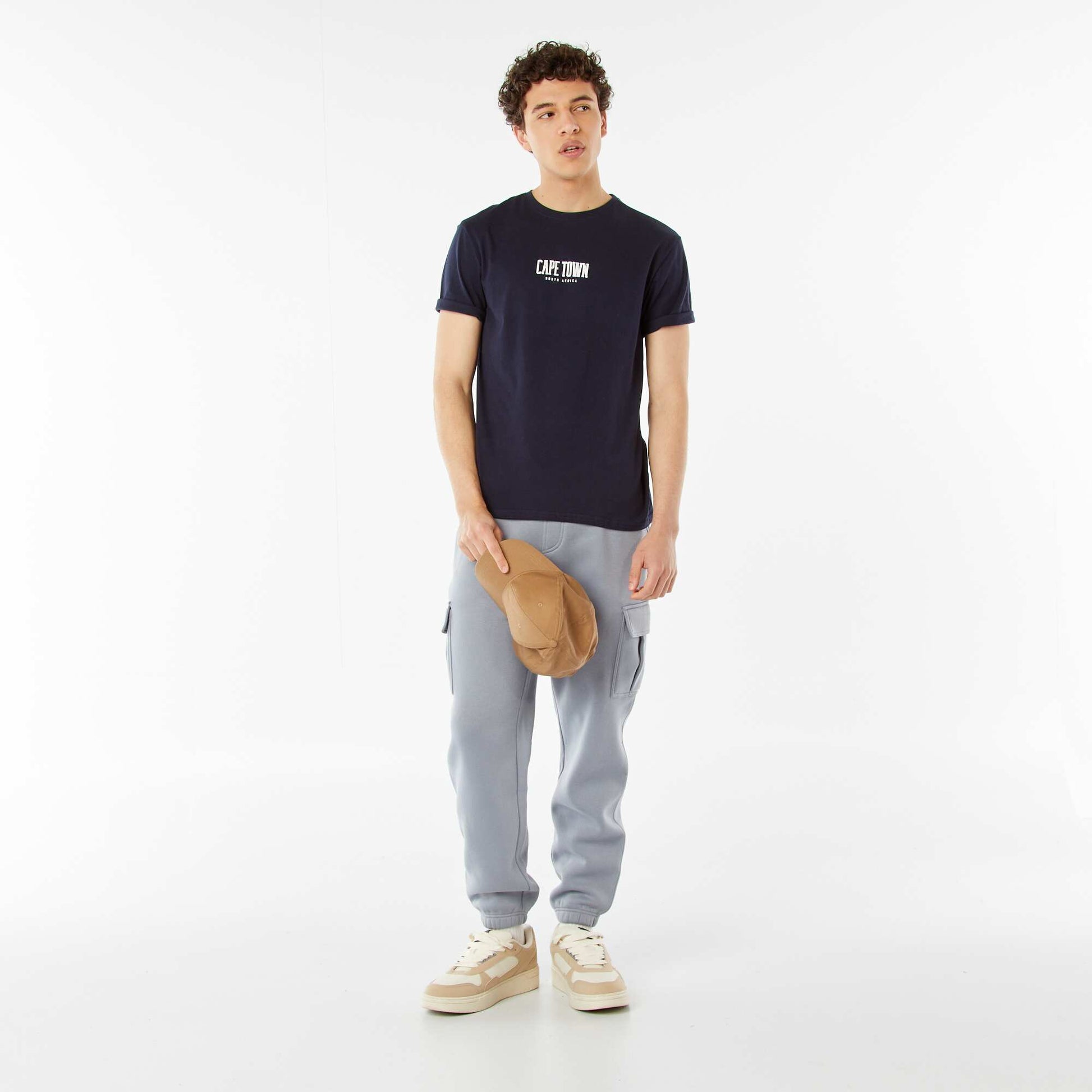 A minimalist T-shirt with lots of printed slogans! \n- Printed T-shirt \n- Cotton \n- Short sleeves \n- Round neckline \n- Lettering on the chest \n- Back length: approx. 70 cm \n- Model wears size M and measures 1m75