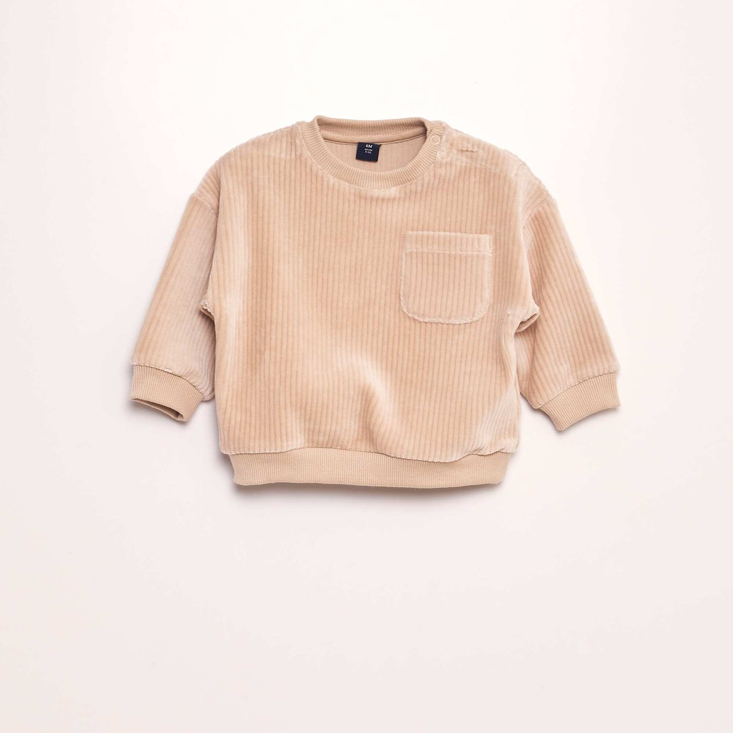 Velour sweatshirt and trousers tracksuit set - 2-piece set BEIGE